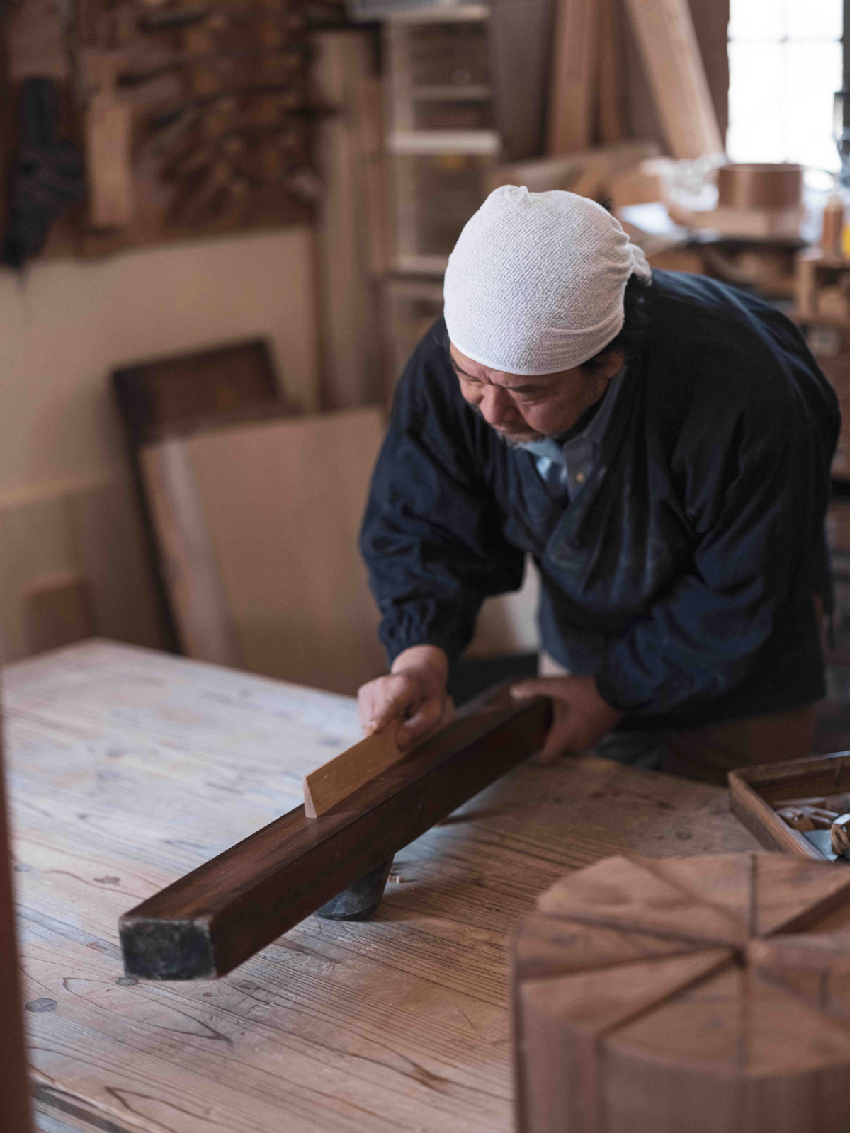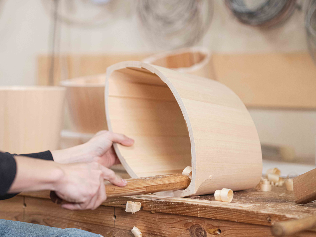 この度、アートスペース福寿園では、木桶職人・中川周士とAntiques & A rt Masa による企画展『時をかさねて、美しく一服の茶と手仕事の記憶』を開催いたします。中川が長年大切にしてきた「美とは、長く使い続けられる理由を内包しているもの」という考えは茶の文化とも深く通じ合います。一服のお茶を味わうひとときの中で、手仕事に宿る時間の重なり、そして使い続けることで育まれる美のかたちを、ぜひ五感を通してご体感ください。