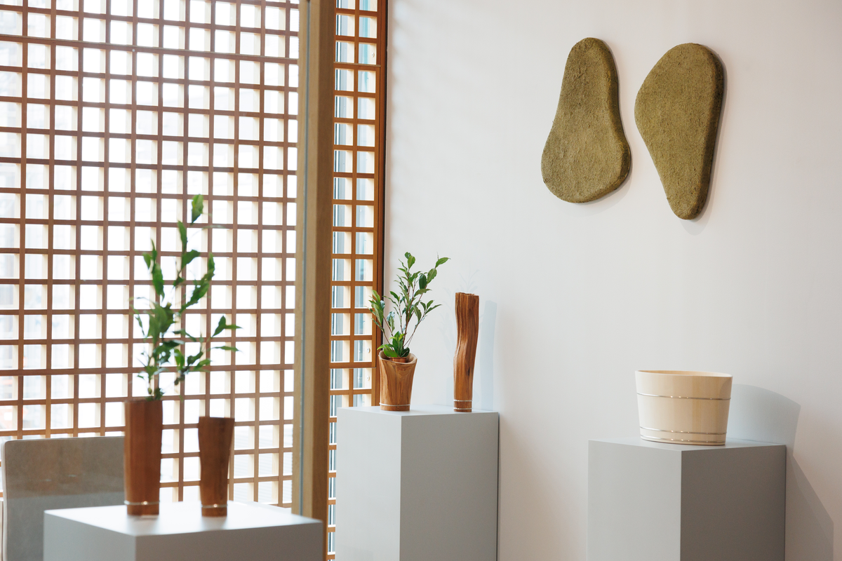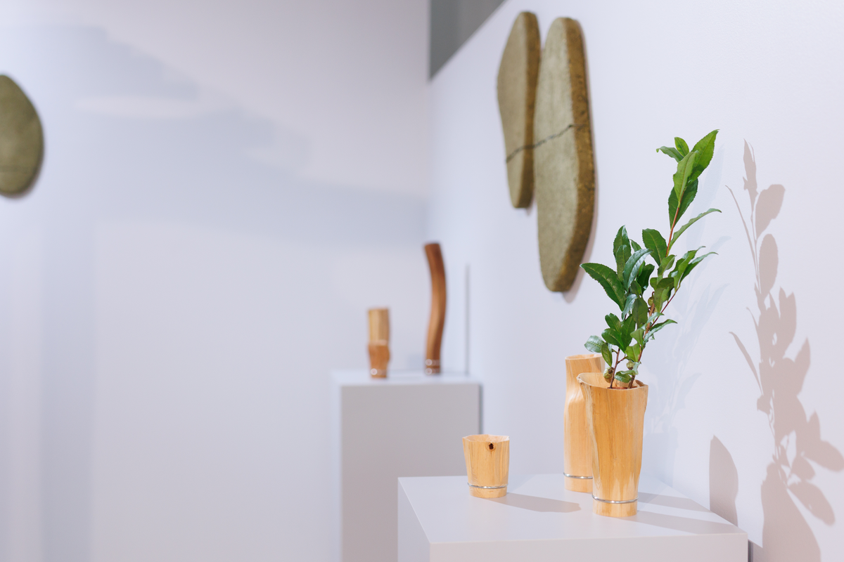 『茶の杜に惑ふ ―個細胞が見る夢―』では、茶畑からお茶が生産されるプロセスの中で、規格外となった茶葉や枝を素材として使用したインスタレーション作品で空間を構成いたします。伝統の木工技術を起点としながら、領域に捉われず想像を拡げ、可能性を追求する作家・中川周士の新たな挑戦と問いかけをぜひご高覧ください。