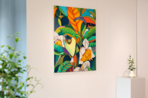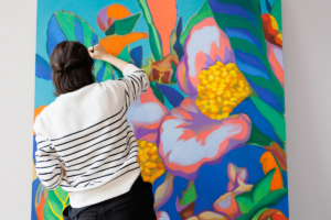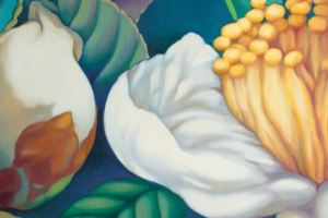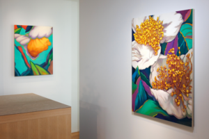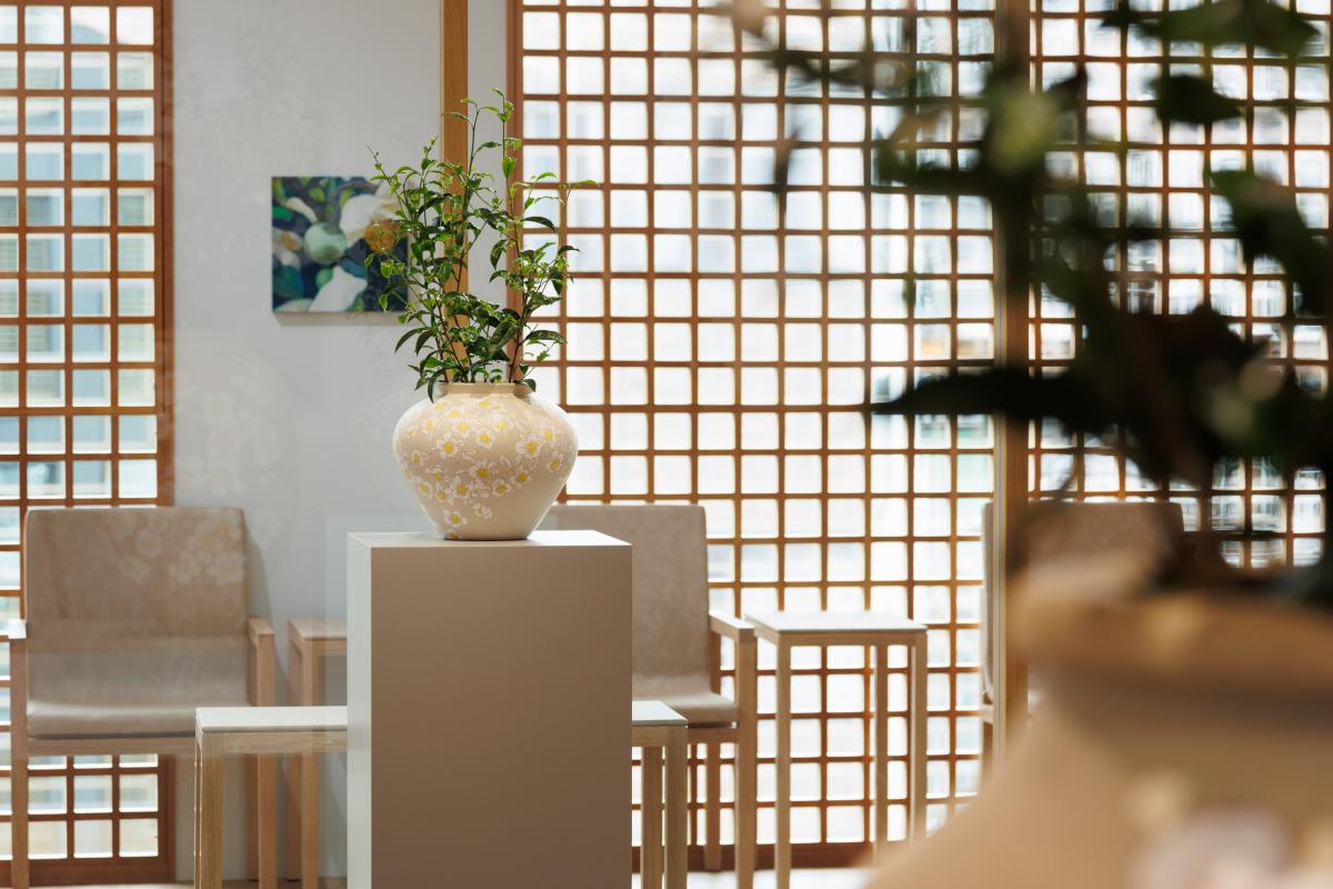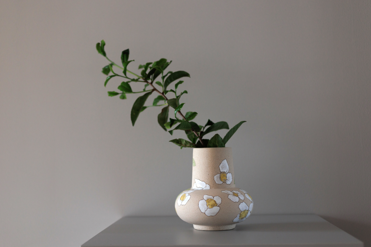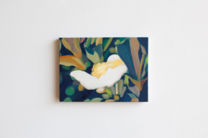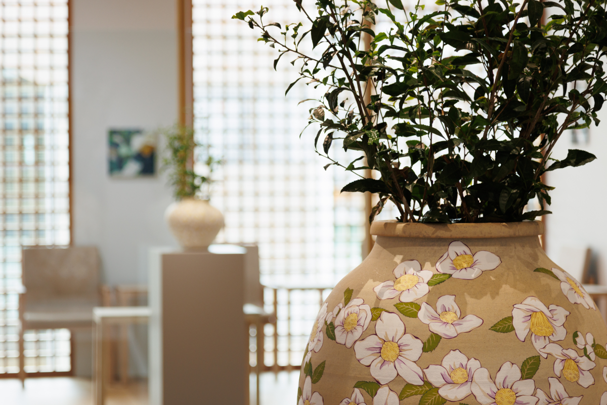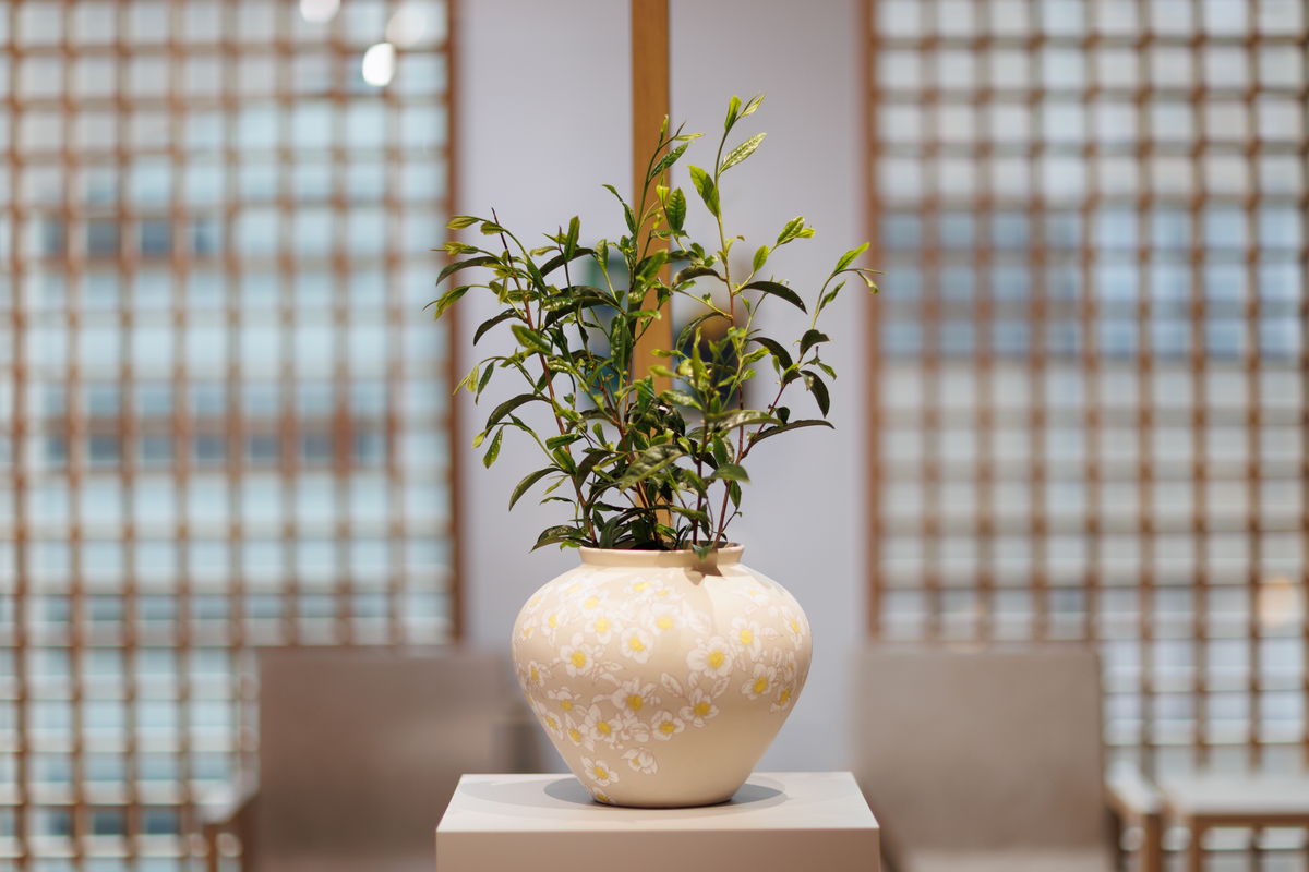 その儚さに醜美を見出し、絵画とインスタレーションでお茶の花を表現しています。