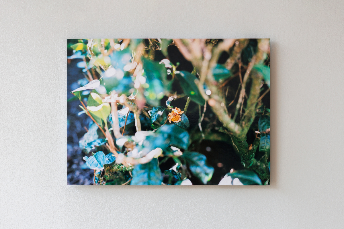 お茶のフィールドワークでは茶園を何回も訪れ、茶園からお茶が皆様のお手元に届くまでのプロセスを研究し、その中でもお茶の花が咲くところにフォーカスしています。茶葉を作る工程で、花が満開になってしまうとお茶の味や風味が落ちるために疎まれている白く可憐な花。本来植物が成長する過程で自然に生まれるものが人の手によって強制的に排除されてしまう。